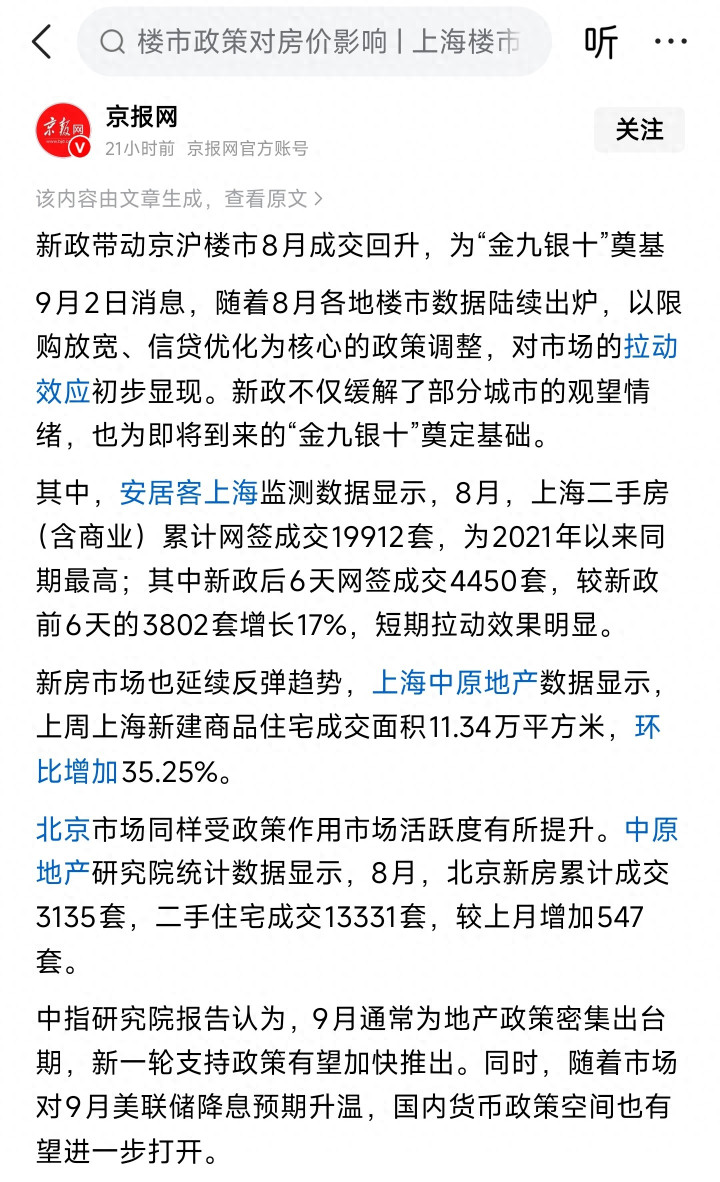就比如8月份的时候,上海不是迎来了一波新政嘛,是公积金,还有放开一些相对的政策。